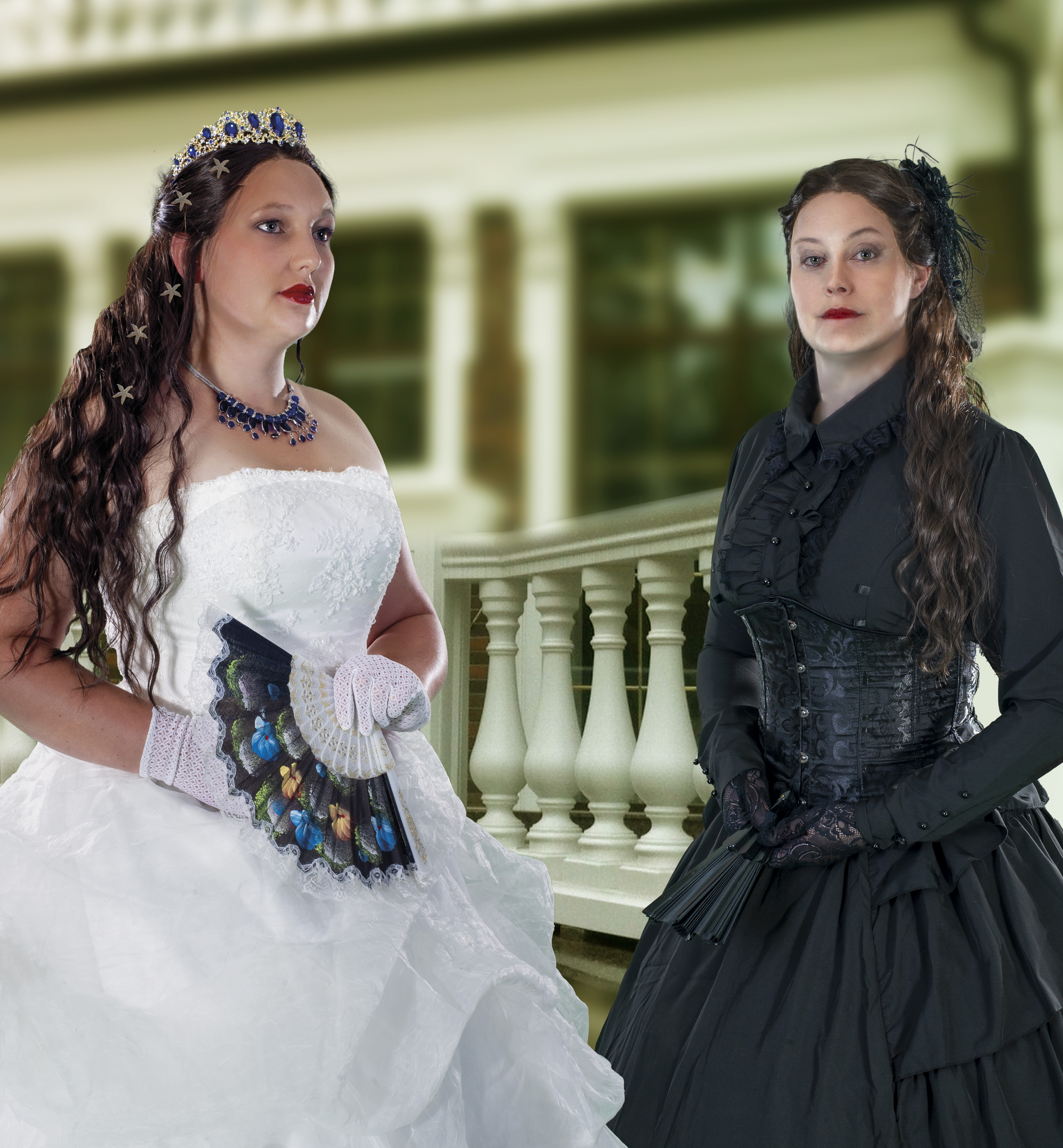 Op de foto in witte kleding Karen Bierenbroodspot als jonge Elisabeth (akte 1) en in zwarte kleding Mariëlle de Jong als oudere Elisabeth (akte 2).